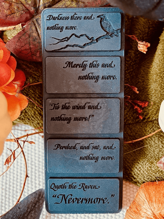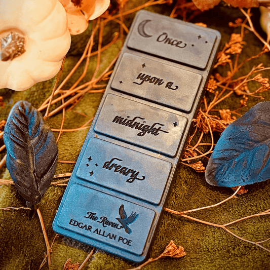 Indulge in the mysterious world of Edgar Allan Poe with our collection of bookish wax melt bars, each adorned with iconic quotes from his haunting poem, The Raven. These beautifully crafted wax melts are the perfect bookish gift for any lover of literature, offering a unique way to bring the dark, atmospheric charm of Poe’s work into your home. Whether you're seeking the perfect gifts for book lovers or simply want to enhance your space with literary flair, these bookish wax melts are sure to delight.