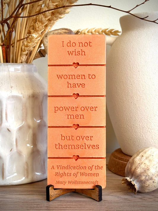 Celebrate the revolutionary spirit of Mary Wollstonecraft with our A Room of One’s Own literary wax melt; a beautifully crafted tribute to one of the most important voices in feminist thought and early literature. Made from sustainable rapeseed and coconut wax, this wax melt is a bold statement piece for book lovers, feminist readers, and fans of literary wax melts.