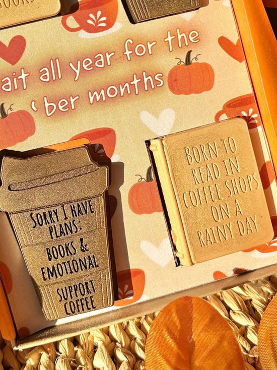 Wrap yourself in the warmth and magic of autumn with our cosy wax melt collection, designed for book lovers and lovers of all things cosy. Each melt is crafted from eco-friendly rapeseed and coconut wax and shaped using our own custom-designed moulds, filling your home with rich pumpkin, indulgent spices, crisp fallen leaves, and cosy fireside notes.