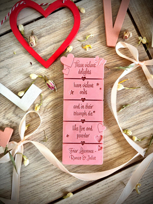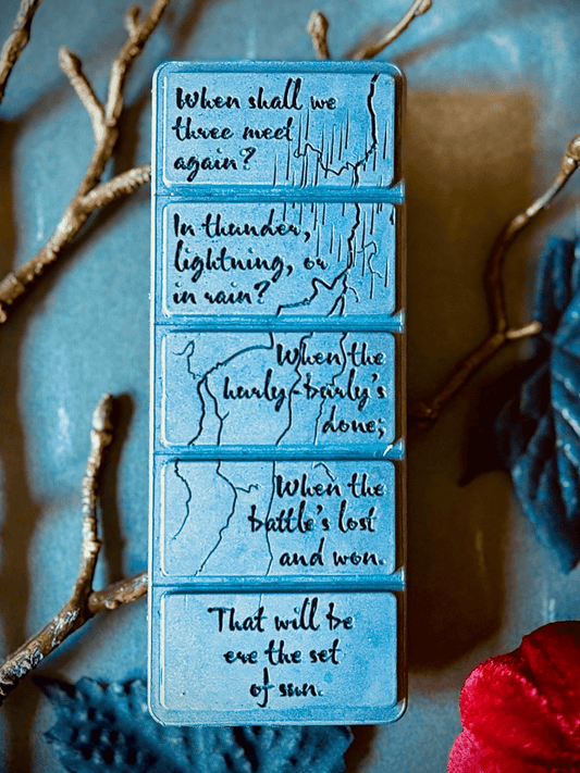 Step into the captivating world of Shakespeare’s plays with our collection of bookish wax melt bars, the perfect Shakespeare gift, inspired by both his comedies and tragedies, including well-loved plays such as Macbeth, Much Ado About Nothing, Hamlet, and Romeo and Juliet. These bookish wax melts make the perfect gifts for Shakespeare fans, offering a unique way to bring the timeless brilliance of Shakespeare's works into your home. Whether you're searching for a literary gift or simply want to create an atmosphere filled with the wit, romance, and intensity of Shakespeare’s characters, these melts will captivate your senses.