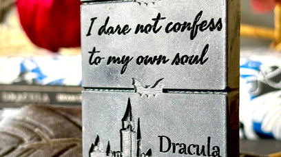 Immerse yourself in the dark allure of Bram Stoker’s Dracula with this gothic wax melt bar. Featuring the haunting quote etched alongside a detailed silhouette of Dracula’s castle, this bar captures the mystery and suspense of the classic tale.