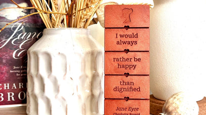 Channel the fierce independence and unbreakable spirit of Jane Eyre with this captivating book wax melt bar. Inspired by Charlotte Brontë's iconic heroine, this wax melt bar features a beloved quote from the novel, making it not just a fragrance, but a tribute to the strength and resilience of Jane herself. Crafted from a luxurious blend of rapeseed and coconut wax, this melt captures the boldness and passion of her character. The combination of this powerful literary quote and a fragrance that embodies Jane's fierce freedom makes this wax melts truly one-of-a-kind; the perfect way to bring the magic of Jane Eyre into your home.