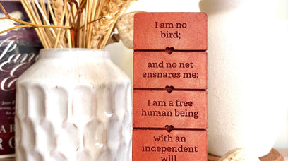 Immerse yourself in the raw emotion and passion of Charlotte Brontë's Jane Eyre with our book wax melt bar. Adorned with this iconic quote, it speaks to the very heart of Brontë’s powerful heroine; fierce, unapologetic, and deeply human. Made from a rich blend of rapeseed and coconut wax, this wax melt bar captures Jane’s indomitable spirit with a fragrance that’s both comforting and bold. A perfect gift for book lovers, this wax melt bar allows you to bring the world of Jane Eyre into your home, filling your space with both fragrance and literary inspiration.
