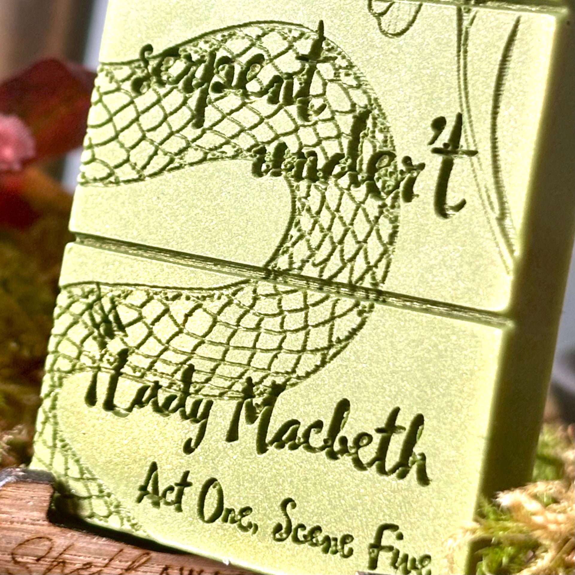 This Lady Macbeth Wax Melt Bar brings to life her cunning words “Look like the innocent flower, but be the serpent under't".