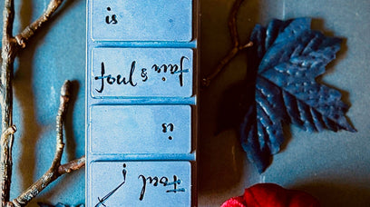 All our wax melt quote bars come wrapped in a compostable glassine paper pouch inside a shredded paper filled box. Read more about our packaging.