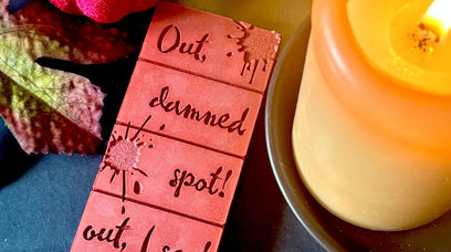 The Lady Macbeth Wax Melt Bar captures the drama and intensity of Shakespeare’s most famous queen with her chilling line, “Out, damned spot! Out, I say!” This deep red wax bar is splattered with realistic blood details, bringing the play’s dark imagery to life. Made from natural rapeseed and coconut wax, it offers a sustainable and clean burn. The rich fragrance combines warm vanilla with spiced milk, creating a scent that is both comforting and slightly unsettling, perfect for evenings steeped in literature and theatre.