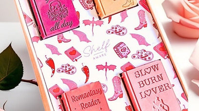 Adorned on these wax melts are the four tropes I love the most about the Romance genre. Each one has been meticulously designed and crafted by us at Shelfaware to make this gift box nothing but a joyful, luxurious experience for our bookish customers.